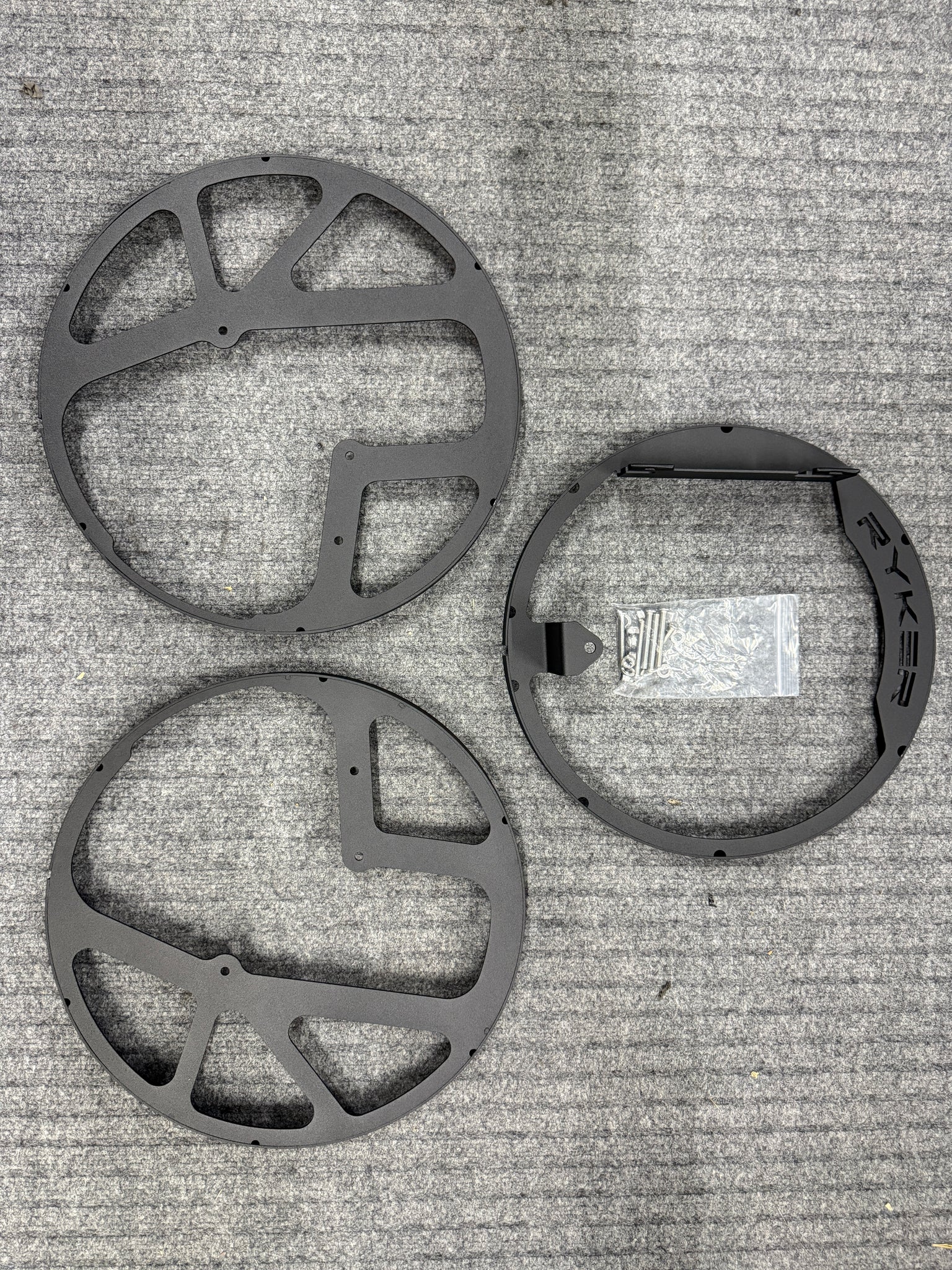 These are our Ryker Wheel rings. Engineered, designed and manufactured in USA. CNC laser cut and roll formed to be 100% dead round and rock solid and then given a gorgeous matte black powdercoat. No flex, wiggle or flimsiness like other wheel rings out there!!!