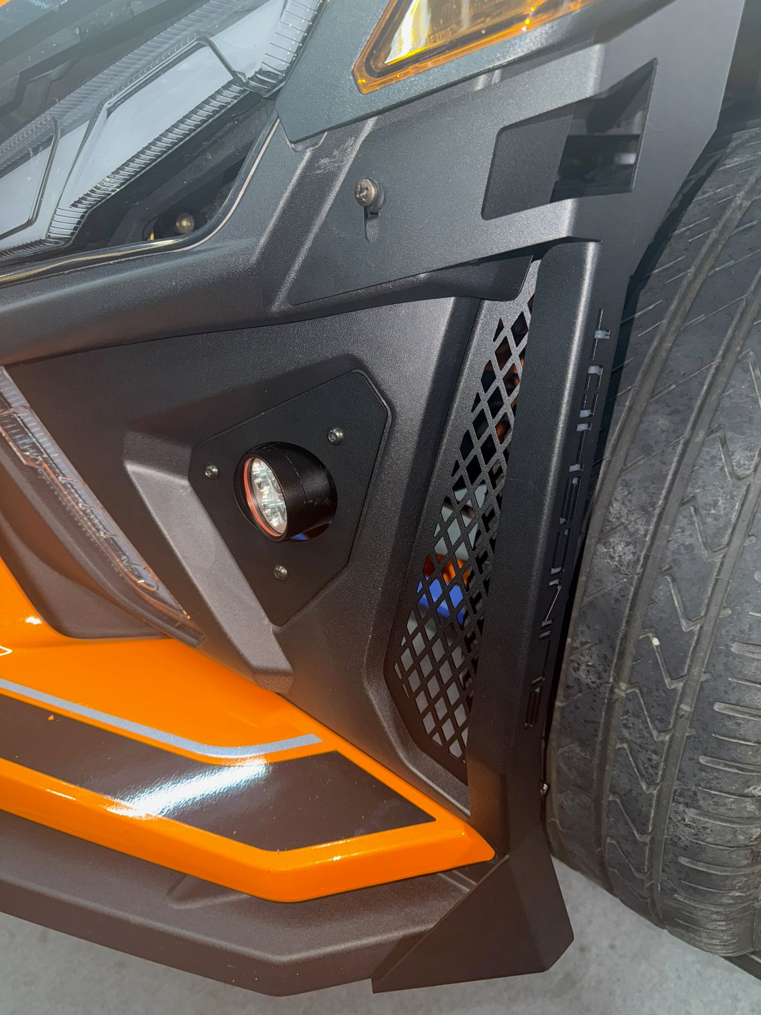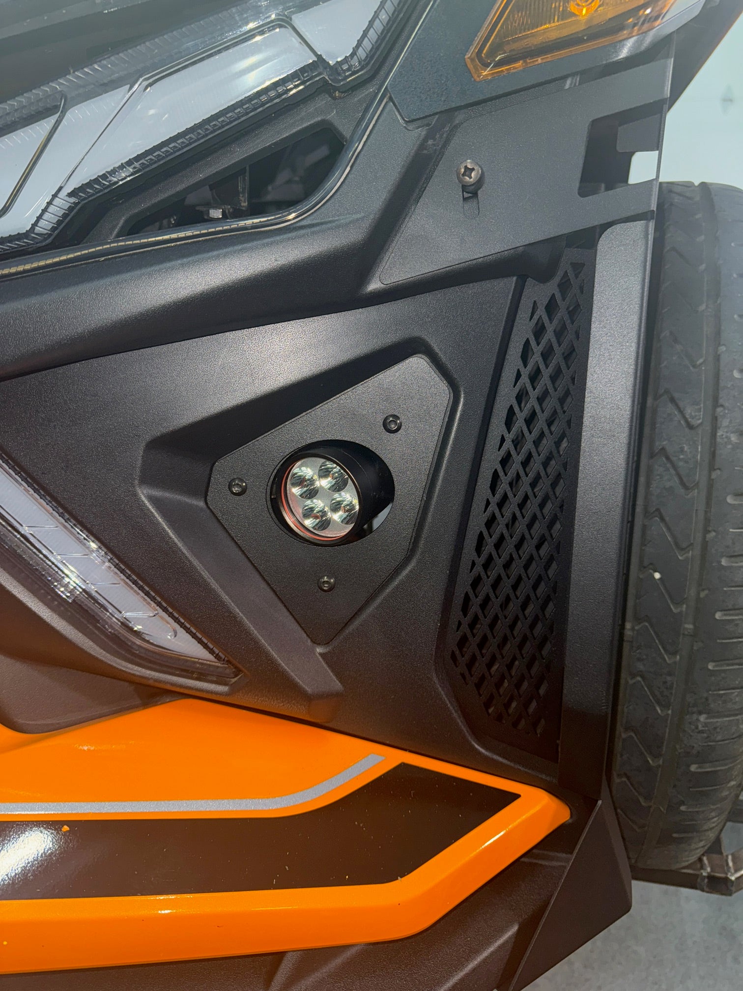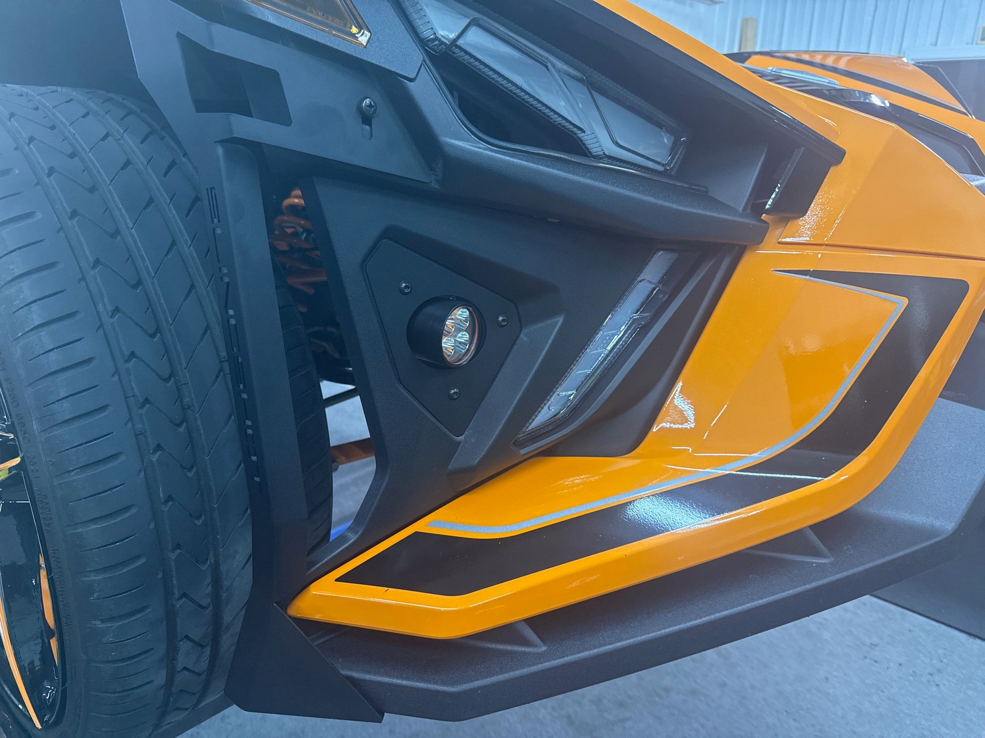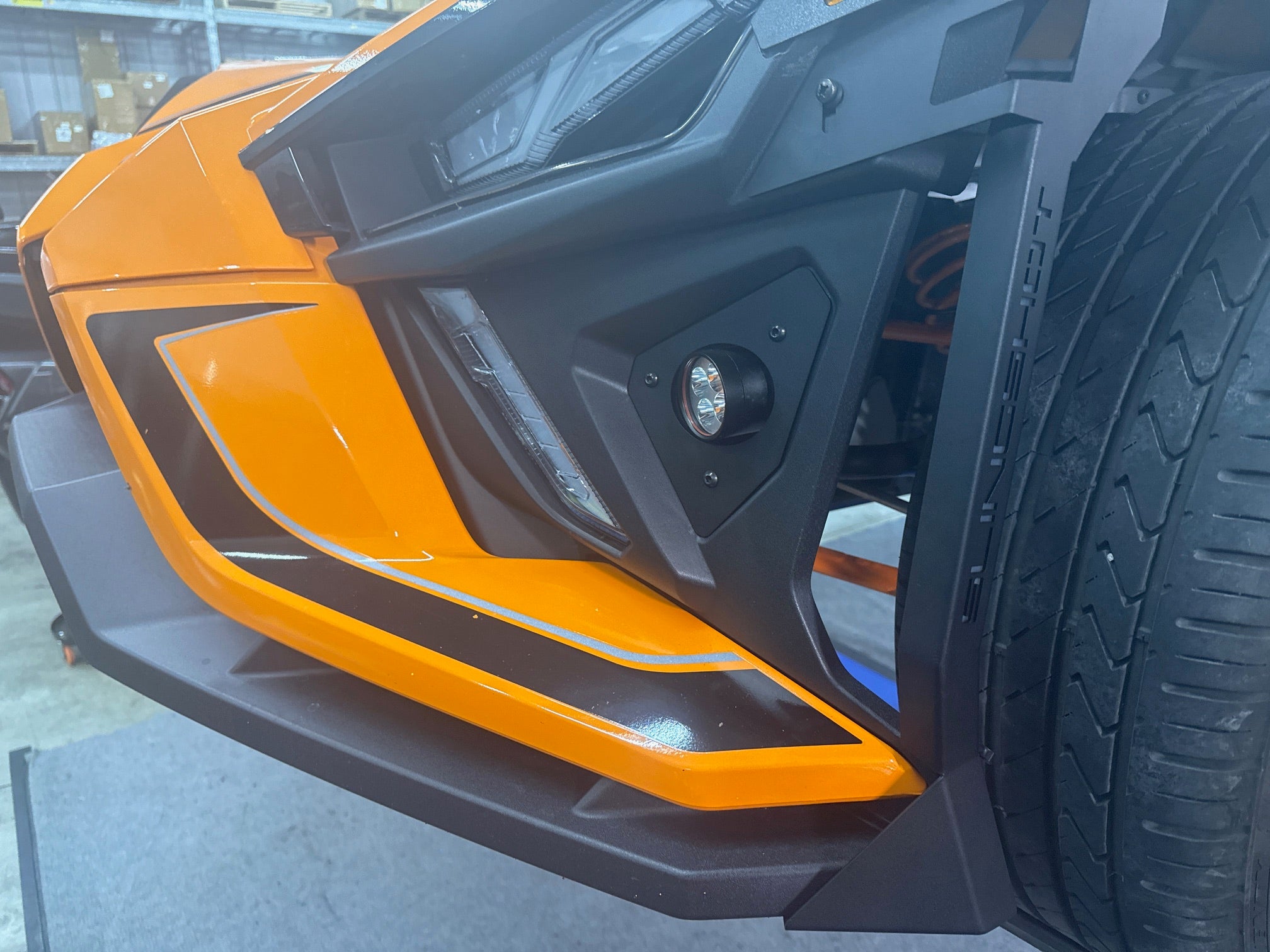 Fresh off the drawing board at TricLED (not really, this was was very difficult and took a very long time) is our new TricLED Gap PillarZ for SlingShot. We were shooting for a "wider" and bolder front-end stance that would close up the "gap" in the gap filler. Also, hides the view of the tires from the front!!!